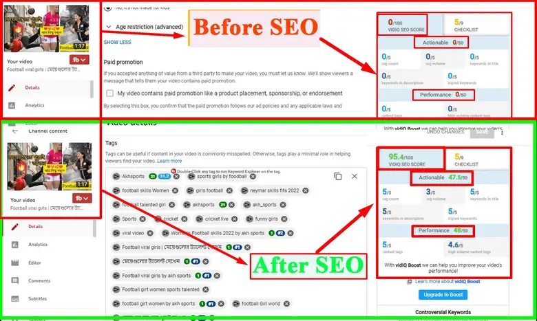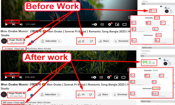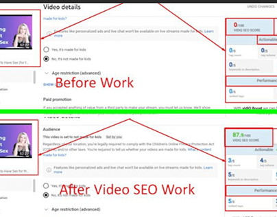 👉 Basic:- Keyword Research, SEO FriendlyTitle, Tag, Description, HashTag, RankTag, Meta Description, Body part, End Part & Thumbnail Optimization.